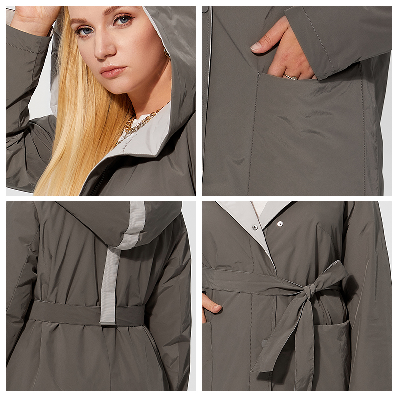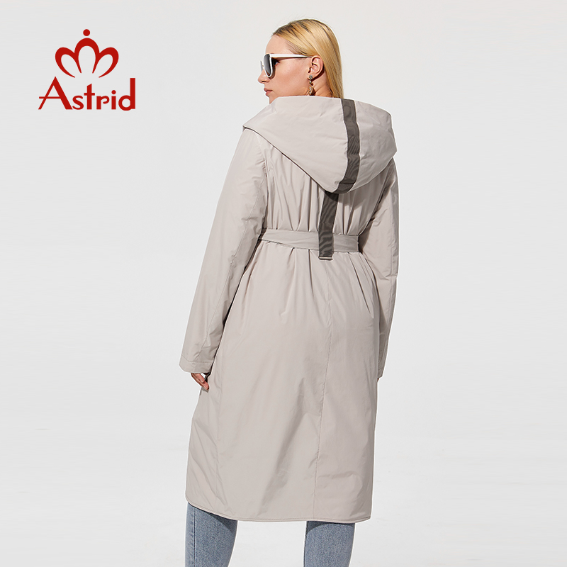Astrid Spring Women's Parkas Plus Size Thin Cotton Elegant Long Jackets Female Coats with Hooded Big Pockets Belt Outerwear