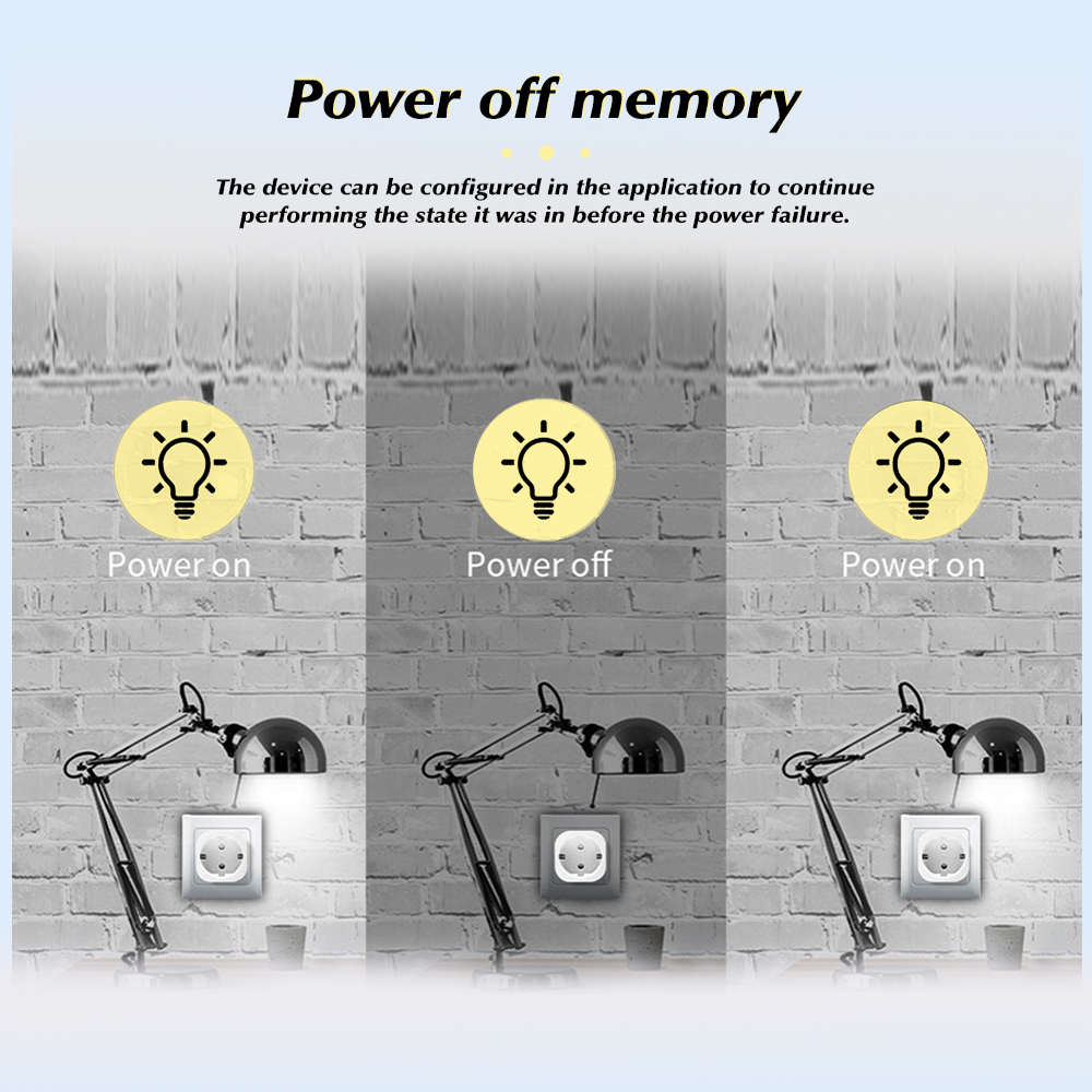 The device can be configured in the application to continue performing the state it was in before the power failure.