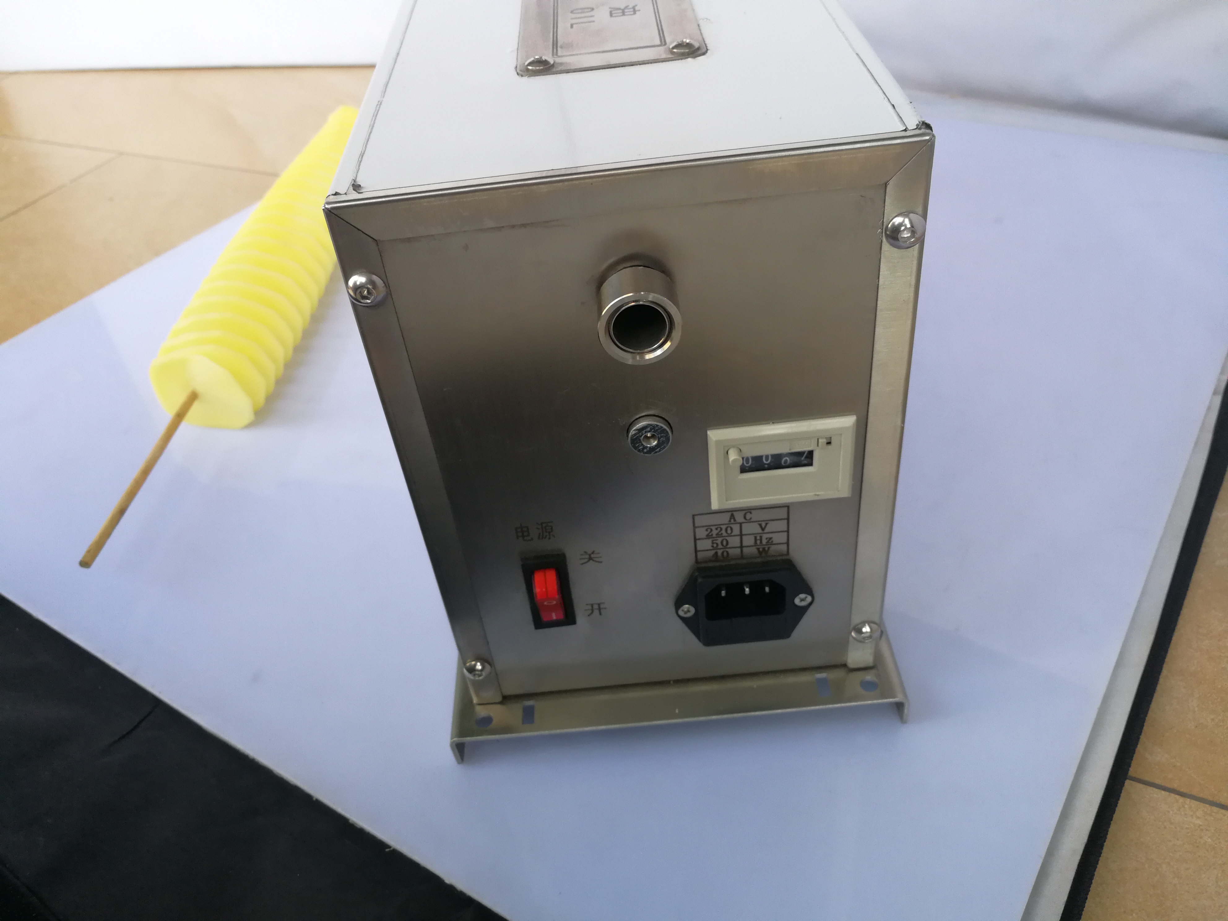 2 bamboo into a potato, then fresh potatoes into potato tower, the machine will cut potato rotation, becomes a rotary cut potato!