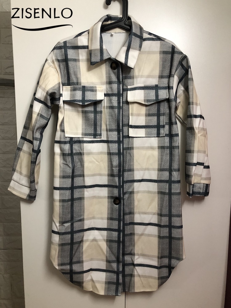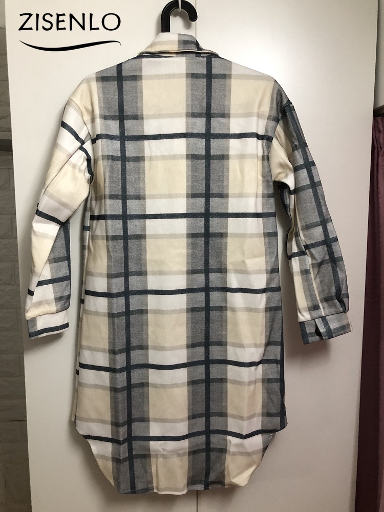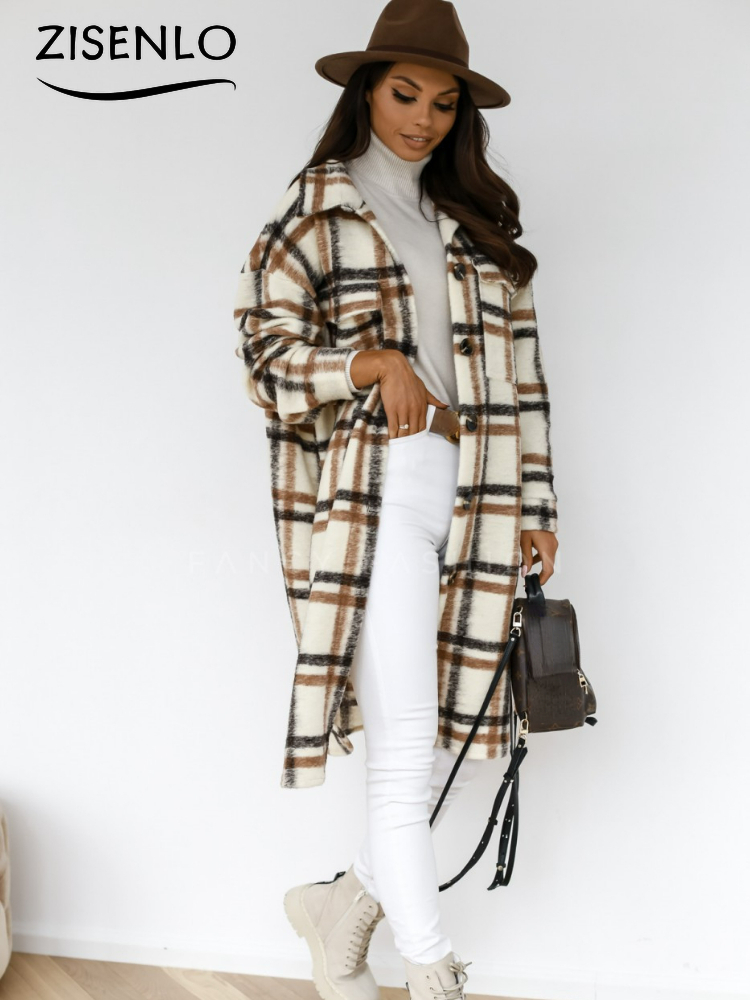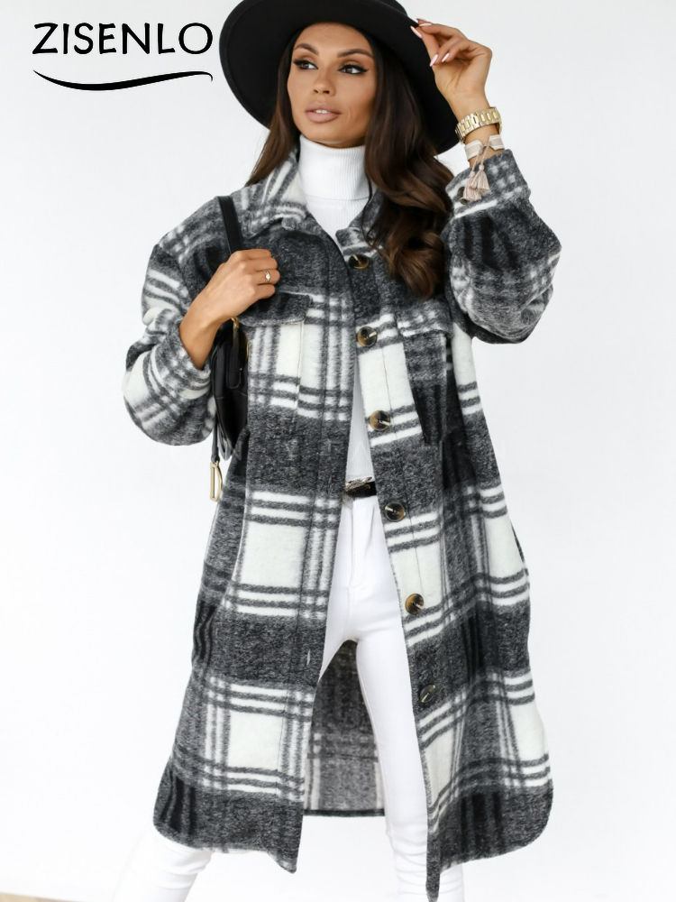 Autumn and Winter Long Sleeve Button Lapel Casual Plaid Long Coat Women's Winter Coats Jackets Women's Overcoat Jacket