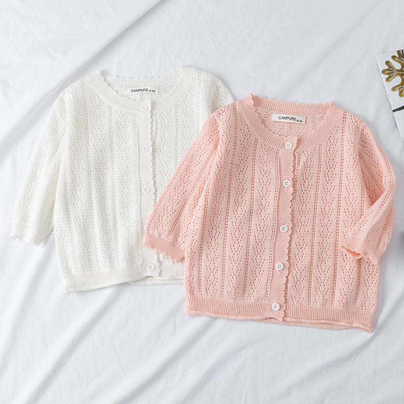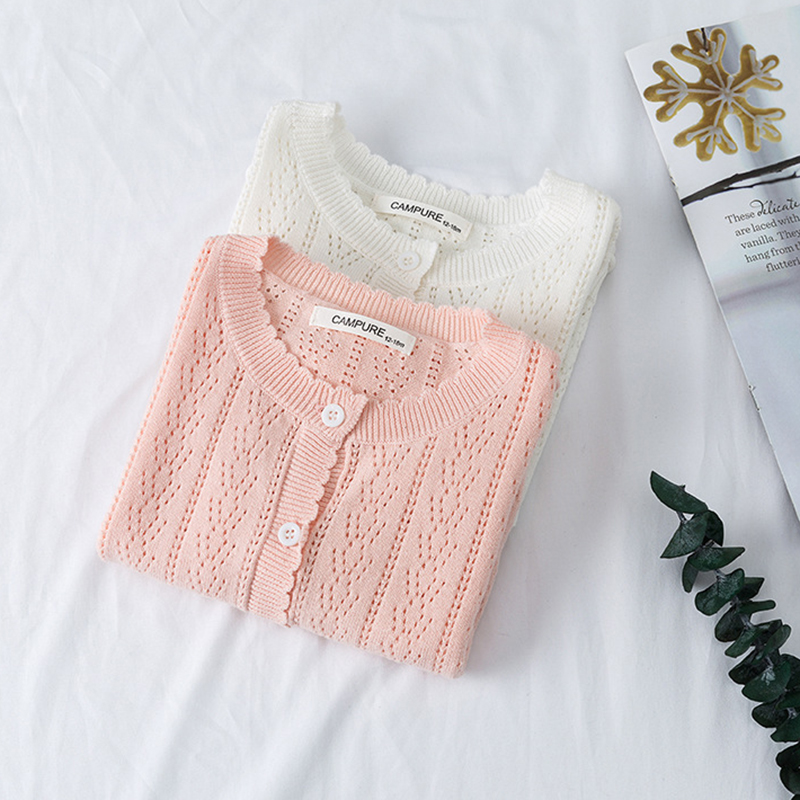 Baby Girls Cardigan Thin Coat Female Baby Princess Hollow Knitted Sweater Sunscreen Air Autumn Spring Coat