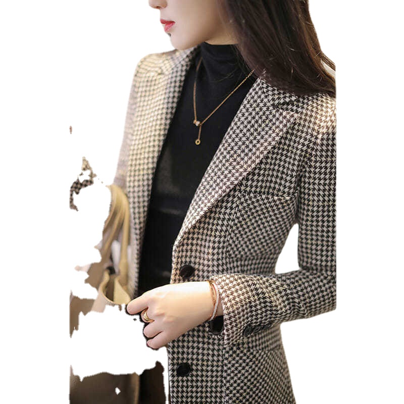 Styles2 : houndstooth All-match Temperament Top Single Breasted