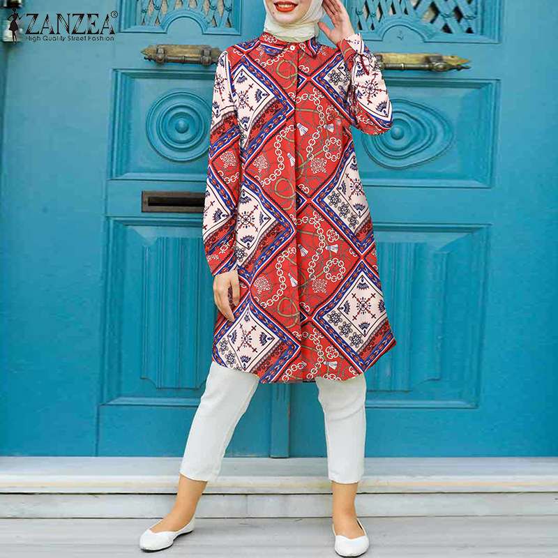 Bohemian Casual Loose Elegant Tops Shirts ZANZEA Muslim Islamic Women Full Sleeved Lapel Vintage Blouse Elegant Printed Button