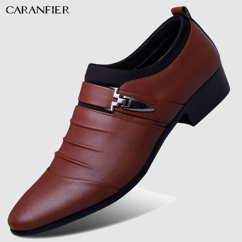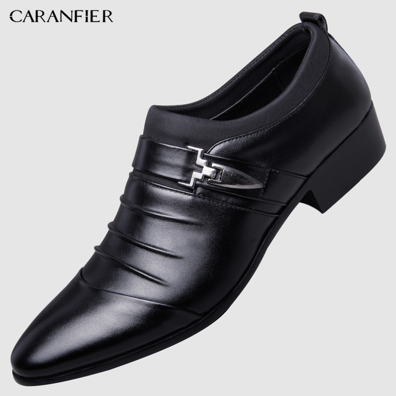 CARANFIER British Men's Slip On Split Leather Pointed Toe Men Dress Shoes Business Wedding Oxfords Formal Shoes For Male