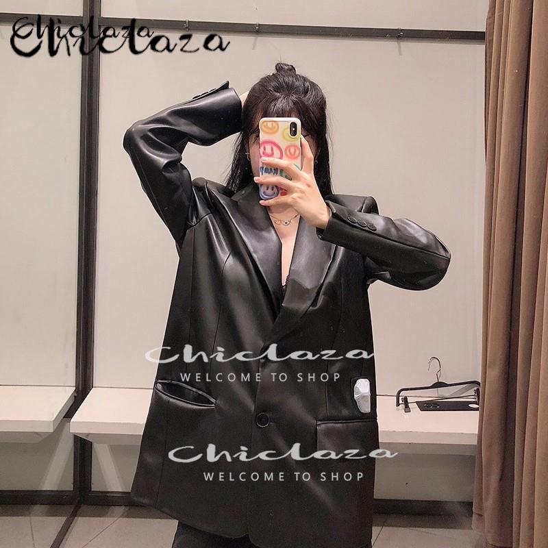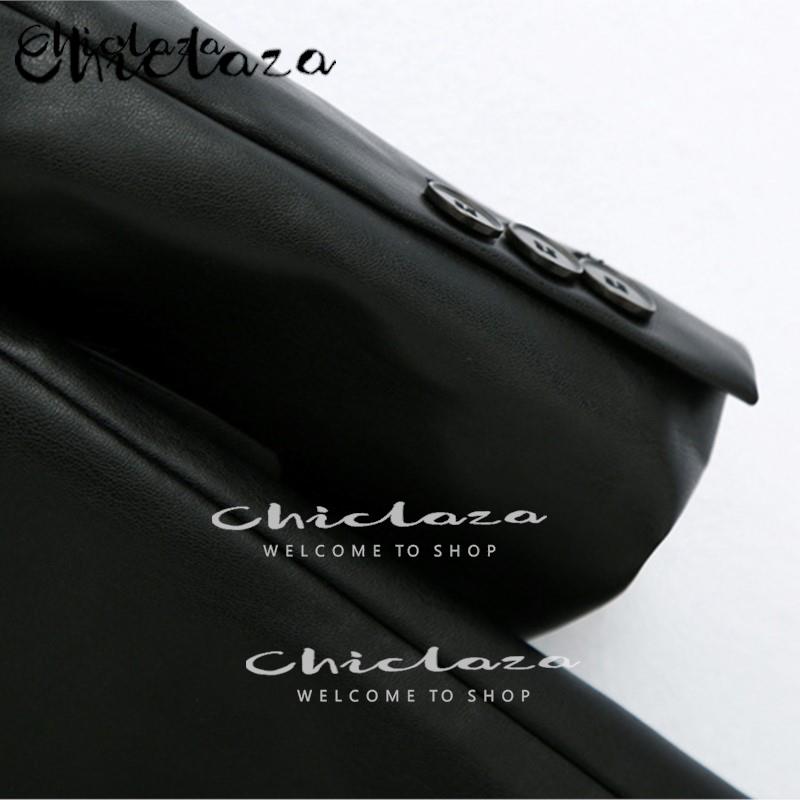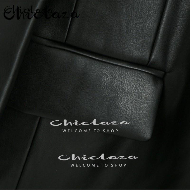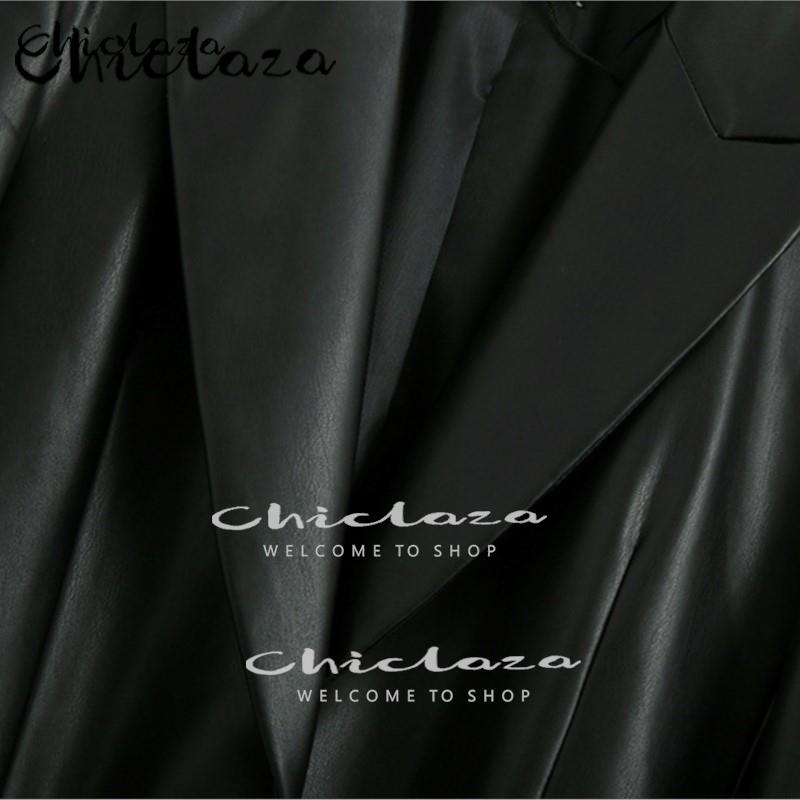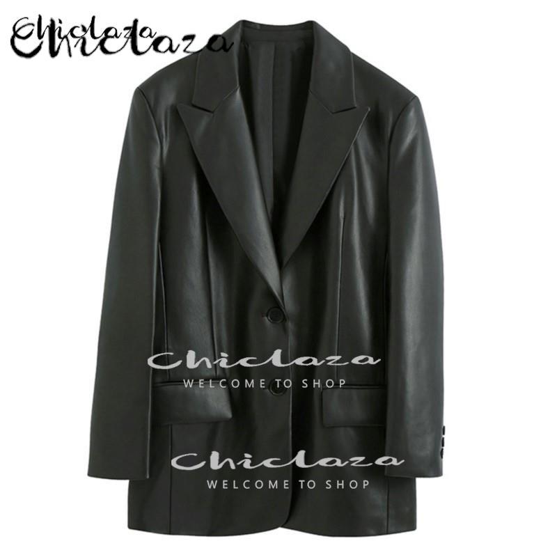 CHICLAZA Women Spring Autumn Black Faux Leather Blazer Jacket Ladies Casual Solid Button Office Coat Female Outwear