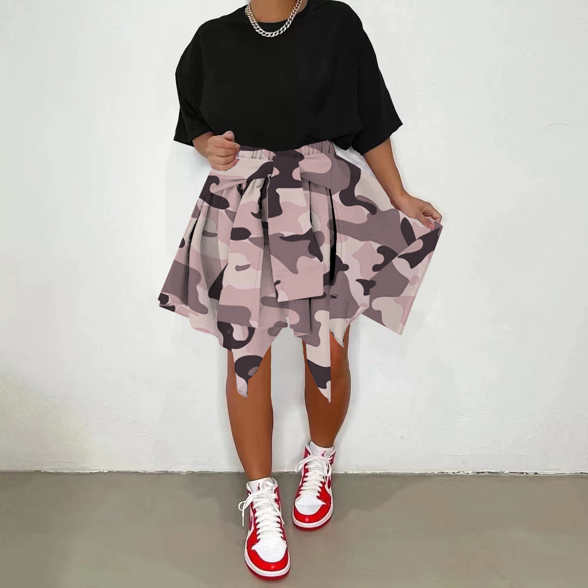 CM.YAYA Women Plaid Irregular High Waist Knee Length Skirts Summer Holiday Streetwear Sleeve Wrapped Lace Up Waist Skirt