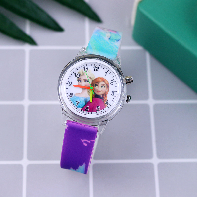 Fashion Cartoon Flash Light Girls Watches Kids with Rracelet Silicone Strap Princess Elsa Children Watches Clock reloj infantil
