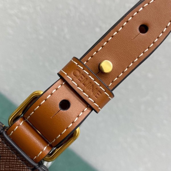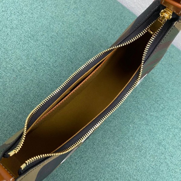 Celine’s technical and artistic expertise is expressed to the fullest extent in the Ava bag. Designed in Camouflage canvas and celine print, the signature of the French fashion house, it offers golden finishes coupled with calfskin leather. Its elegant crescent moon design can be carried in the hand or on the shoulder by means of an adjustable shoulder strap. This accessory, full of character, impresses with its modernity, combined with a strong couture accent.