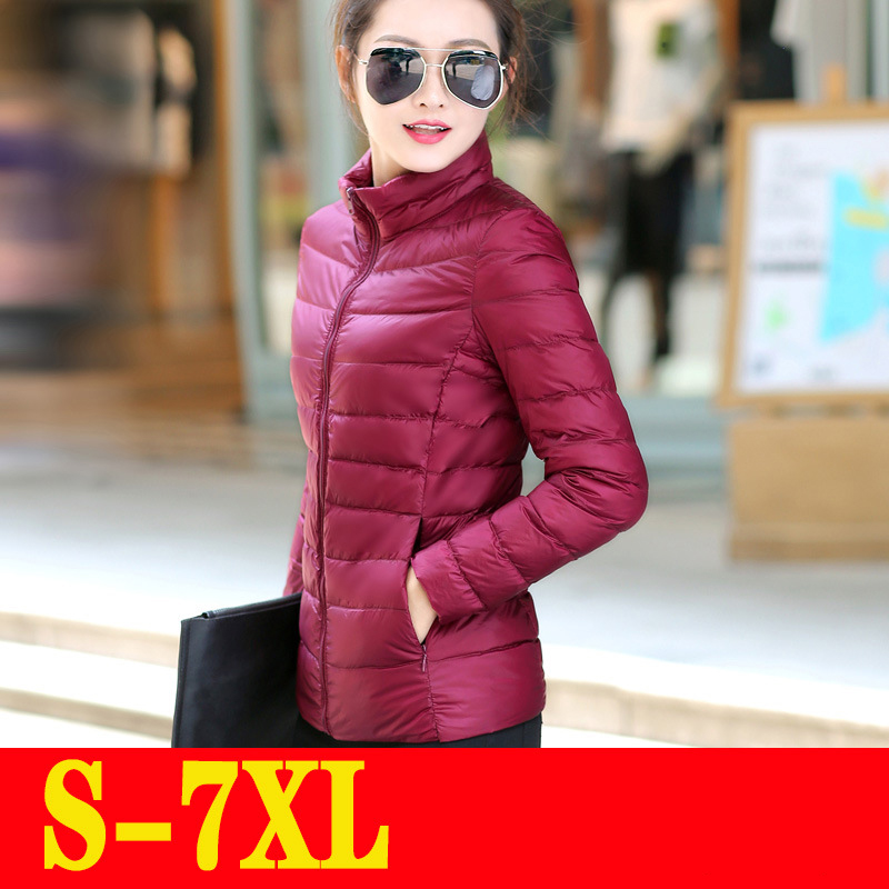Cheap Duck Down Jacket Female Thin Short Stand Collar Puffer Coat 5XL 6XL 7XL Winter Coats for Women Winter Down Jacket