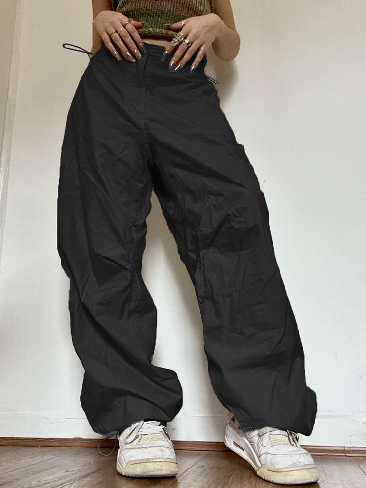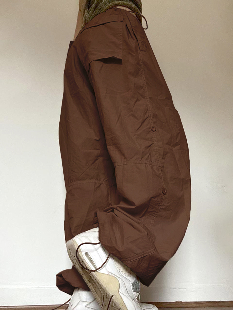Cuteandpsycho Oversized Solid Joggers Tech Pants High Waist Streetwear Brown Baggy Trousers Y2K Casual Vintage Clothes