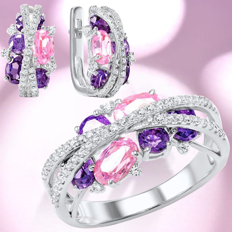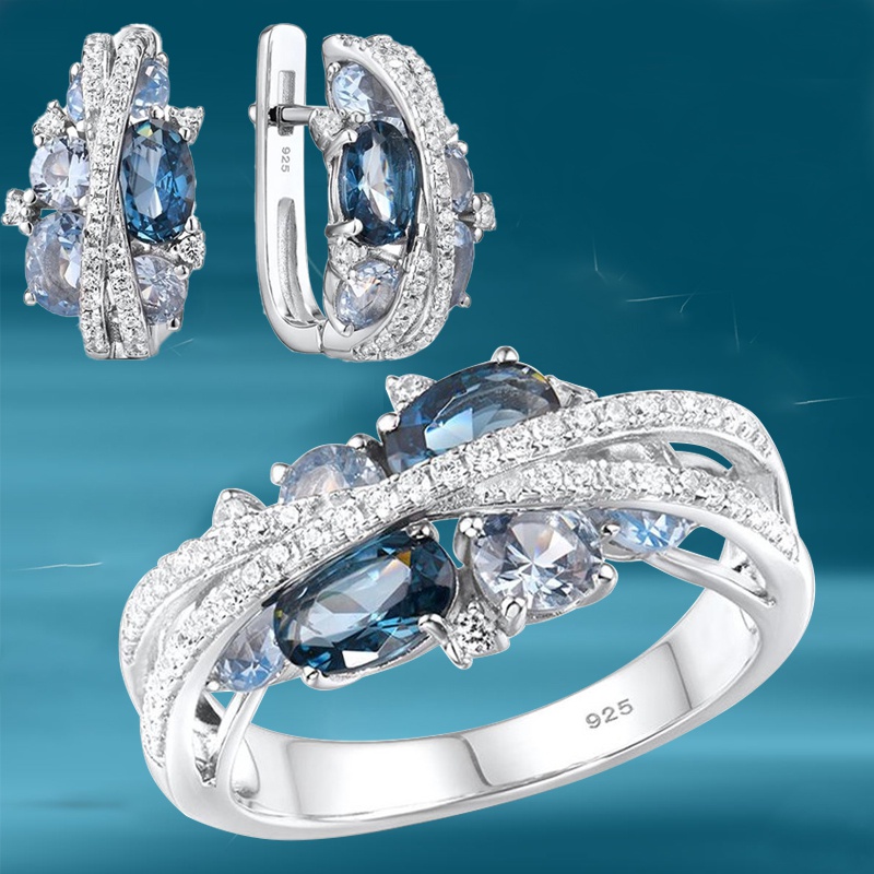 Luxury Designer Sapphire Crystal Jewelry Set for Women Cross Infinite Ring Earrings Necklace Wedding Set Valentine's Day Gift