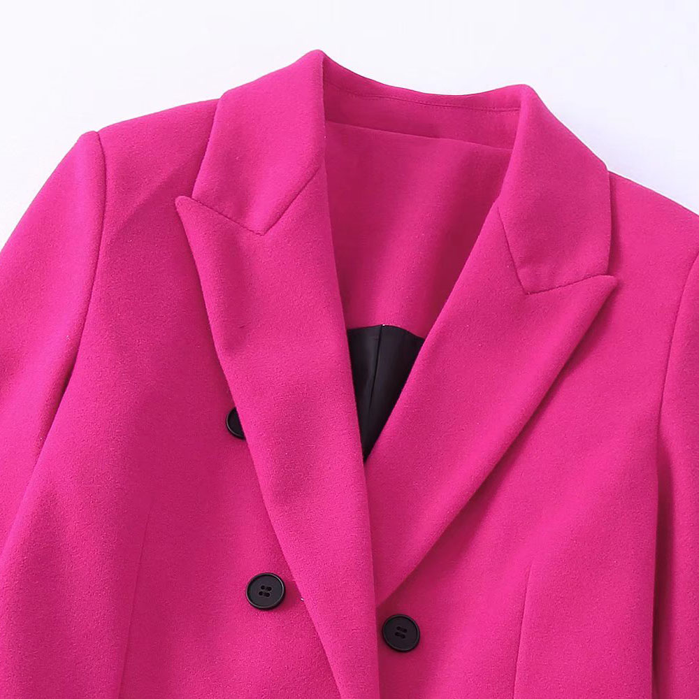 DiYiG Women Woolen Coat Coat Retro Lapel Long Sleeve Double Breasted Pocket Female Outerwear Chic Top Mujer