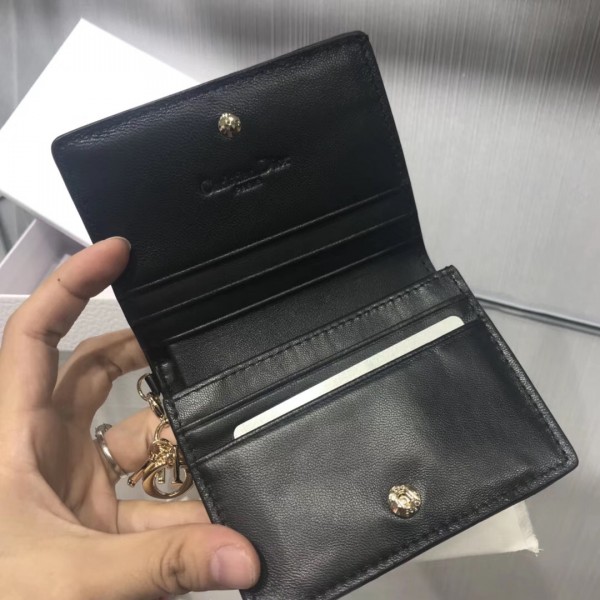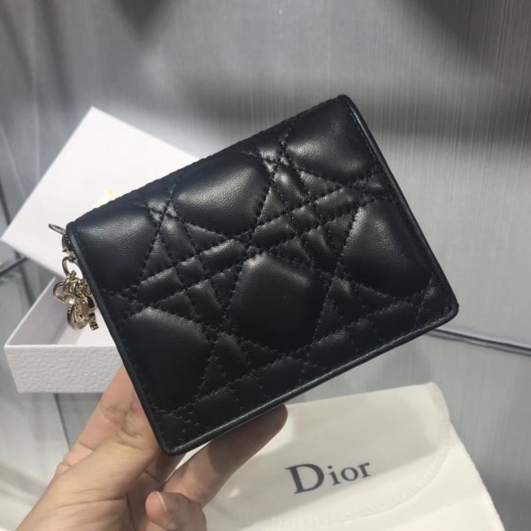 Dior Mini Lady Dior Wallet In Black Lambskin
