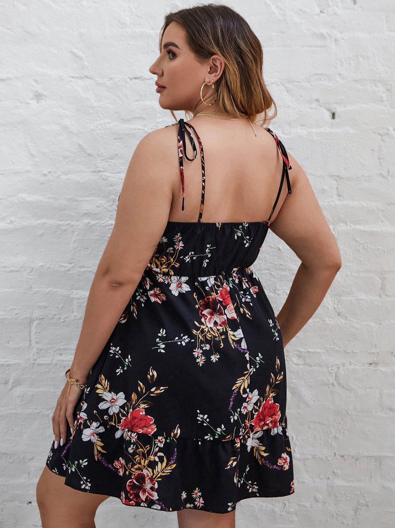 EARO Black A Line Dress Plus Size Floral Print Summer Sleeveless V Neck Sexy Elegant Spaghetti Strap Evening Party Dresses