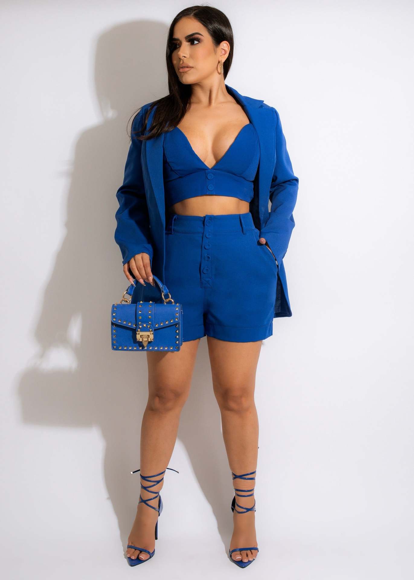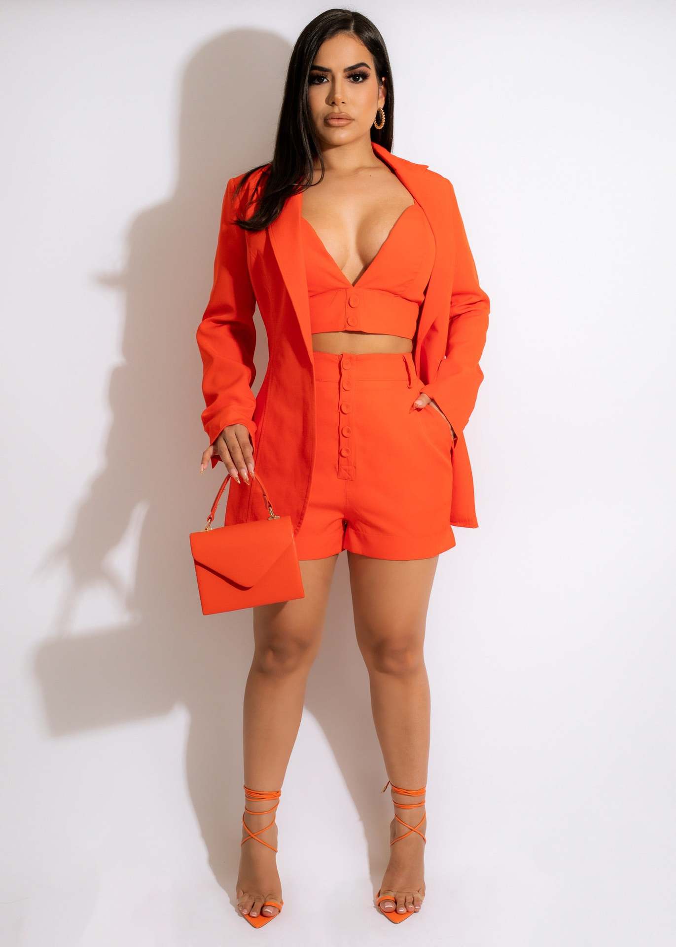 Echoine 3 Piece Set Long Sleeve Blazer Coat Button shorts and Strap Crop Top Autumn Outfits Blazer Suit Street Women Clothing