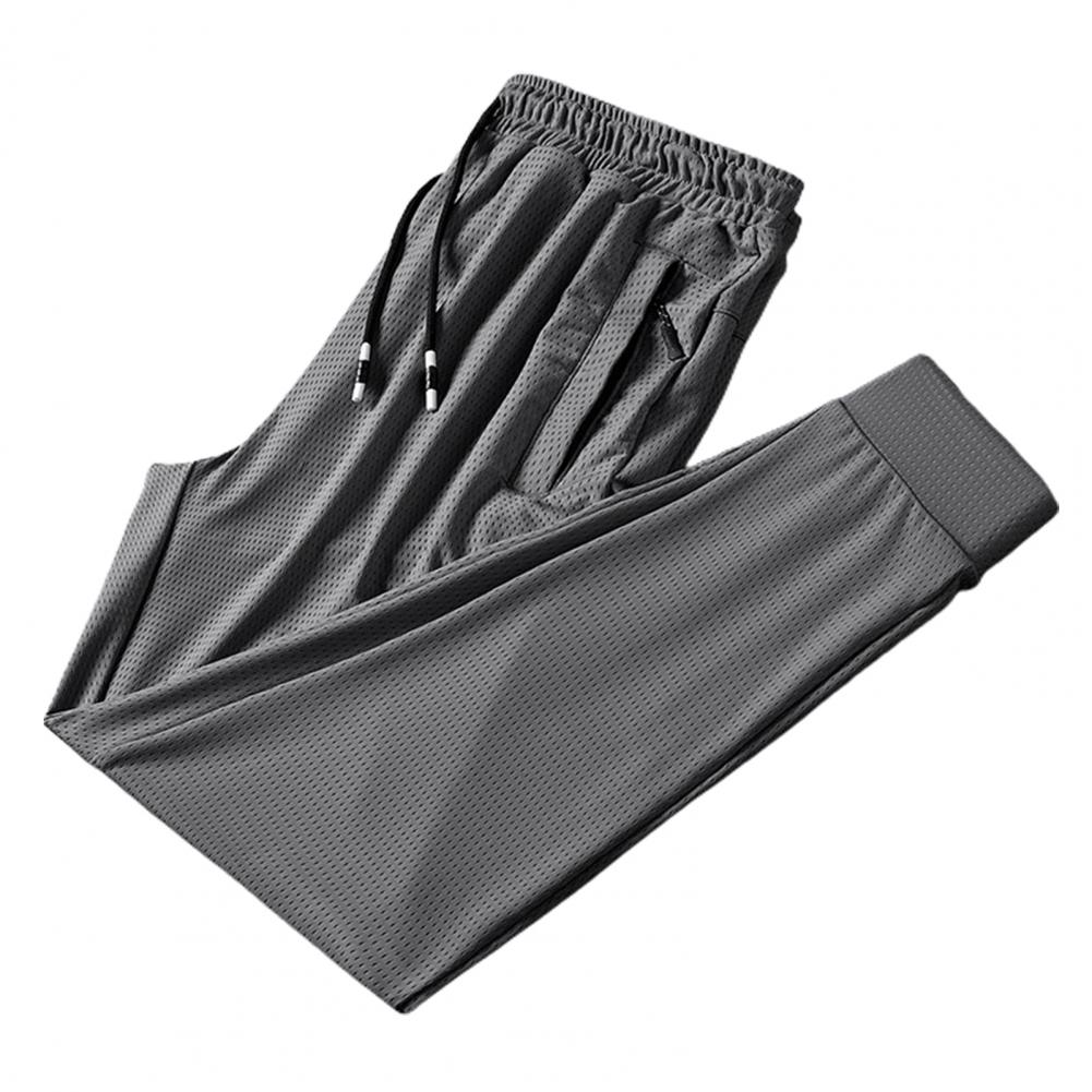 Elastic Waist Drawstring Zipper Pockets Jogger Pants Breathable Mesh Solid Color Long Pants Male Clothing