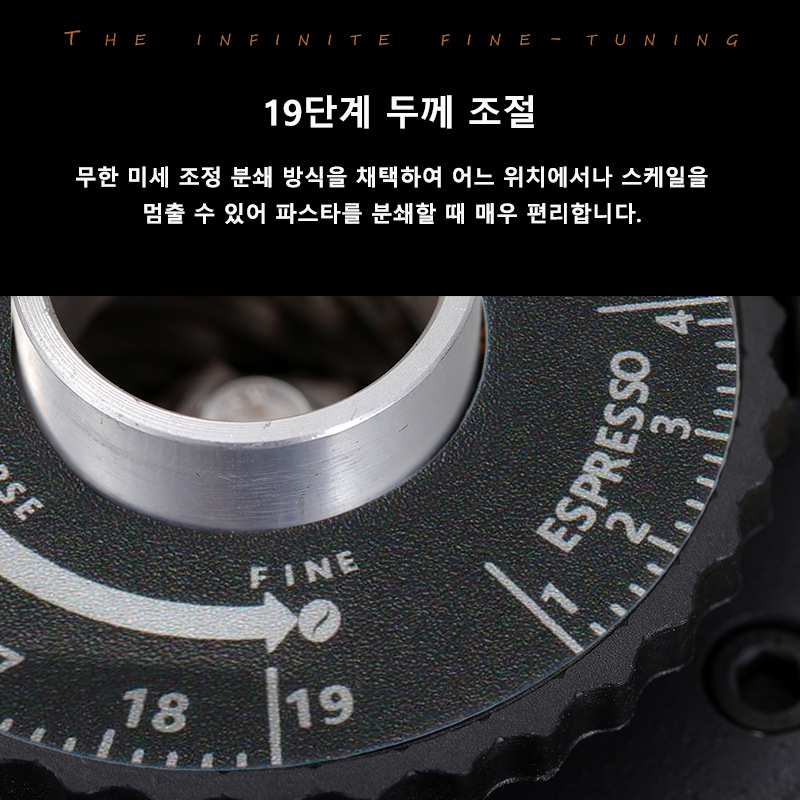 19-Speed thickness adjustment design, suitable for hand pour-over coffee and espresso.