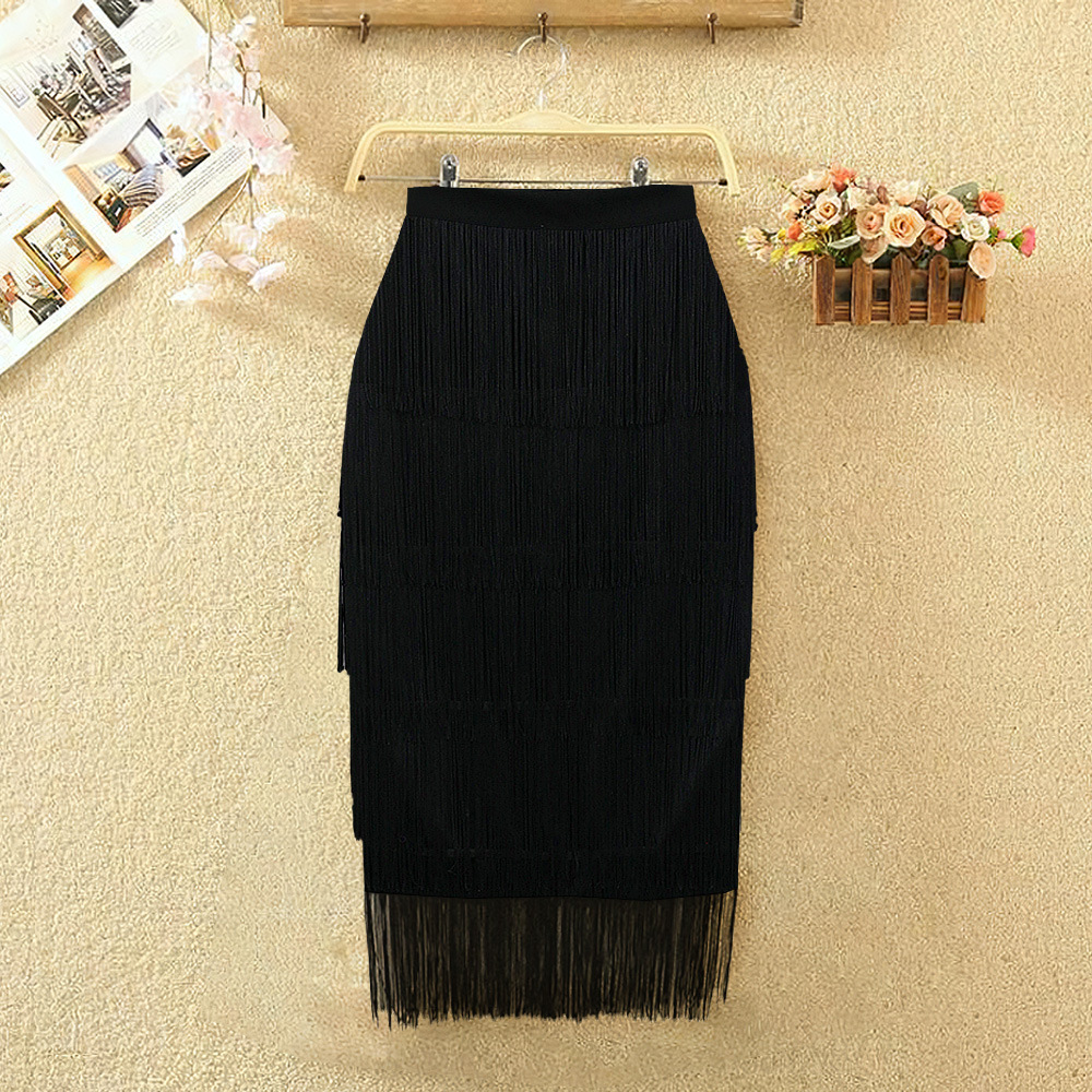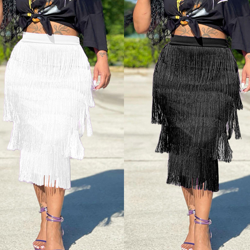 Elegant Tassel Fringe Bodycon Pencil Skirts Womens High Waist Stretchy Sheath Midi Summer Ladies Jupe Party Rock Saia Falda