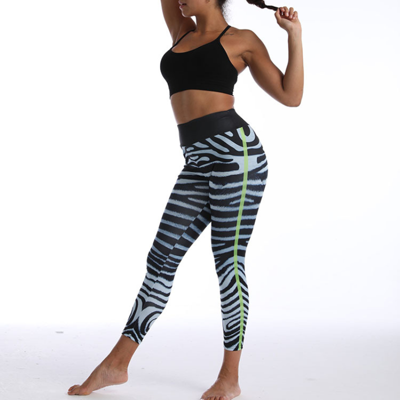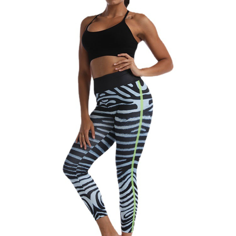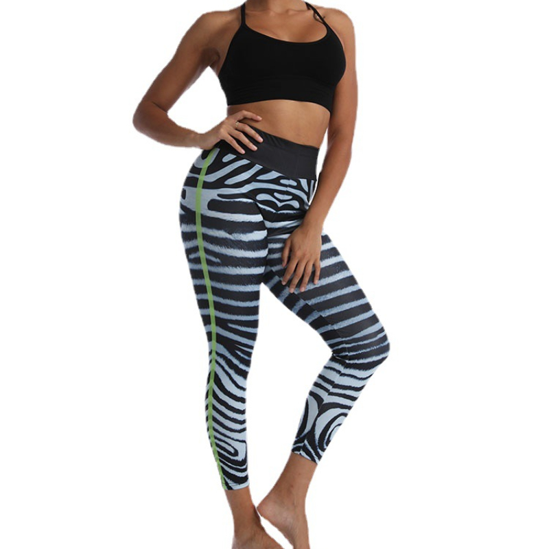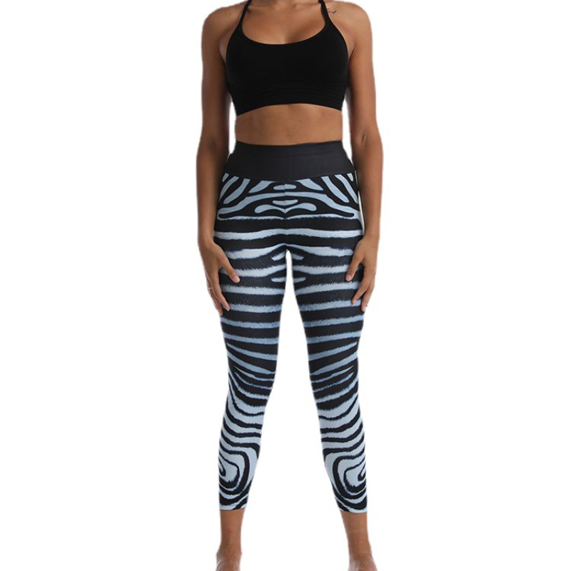 Europe and The United States Fishbone Pattern Printing Yoga Pants High Waist Hip Lift Slim Sports Casual Leggings