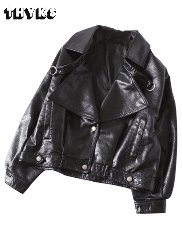 Fall Fashion Green Soft Faux Leather Jacket Ladies Pocket Loose Biker Cropped Jacket High Quality Designer Clothing 2022