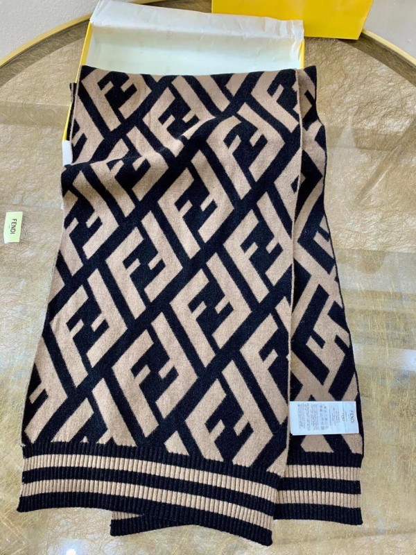 Scarf made of an exquisite blend of wool and viscose with a soft, compact feel. The jacquard weave creates the iconic macro FF motif in tones of black and brown.