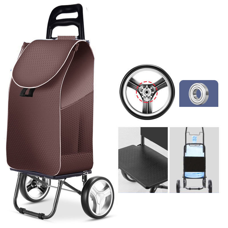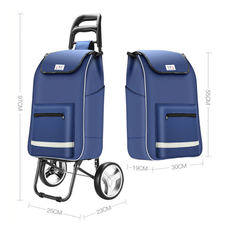 Folding Shopping Cart Trolley Portable Luggage Trailer Grocery Cart with Bag Wear-resistant Rubber Wheels Bearing 100kg