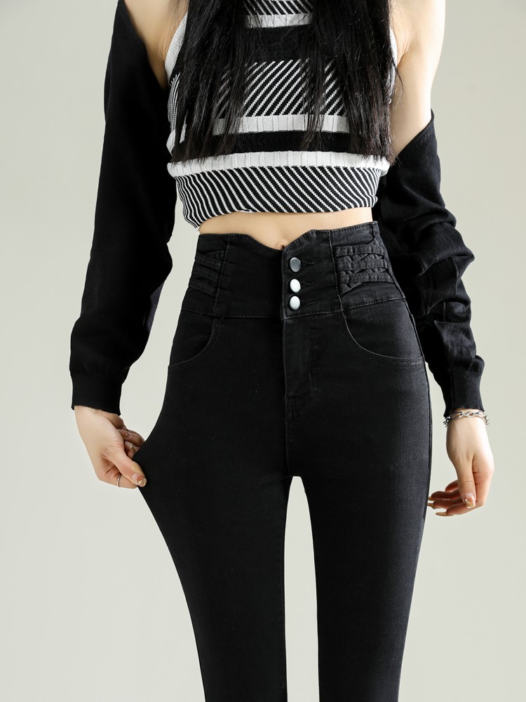 GUUZYUVIZ High Waist Elastic Skinny Jeans Women Autumn Winter Casual Slim Vintage Denim Pencil Pants