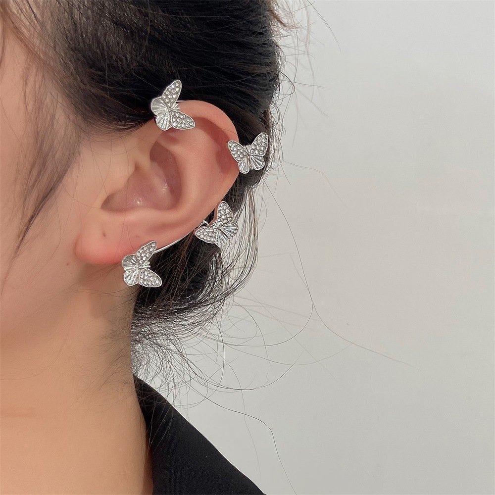 Gold Silver Color Metal Butterfly Ear Clips Without Piercing For Women Sparkling Zircon Ear Cuff Clip Earrings Wedding Jewelry