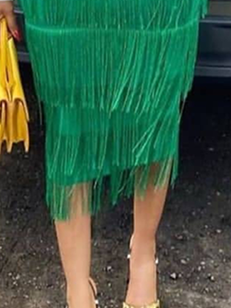 Green Fringe Bodycon Pencil Skirts Tassel High Waist Women Stretch Sheath Midi Length Ladies Slim Jupe Saias faldas Big Size