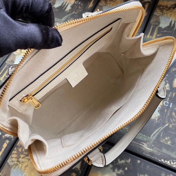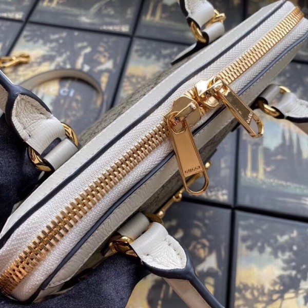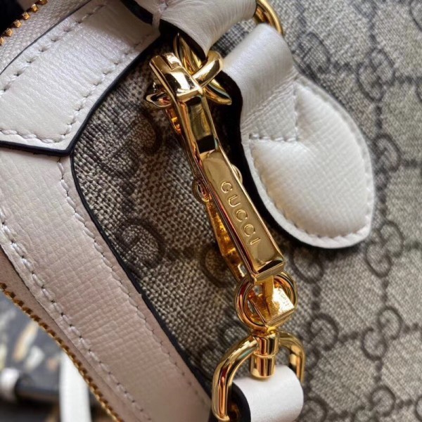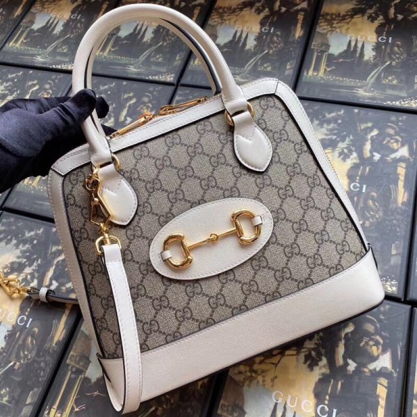 Gucci 1955 Horsebit Small Top Handle Bag In GG Supreme With White Trim