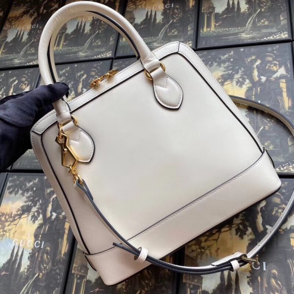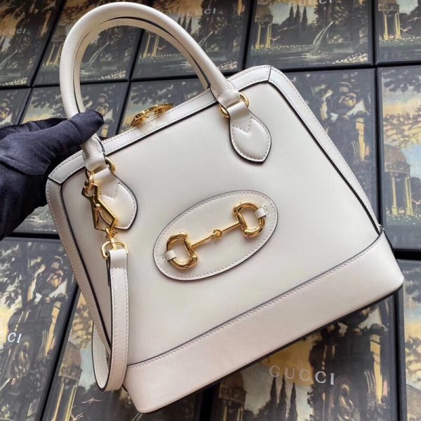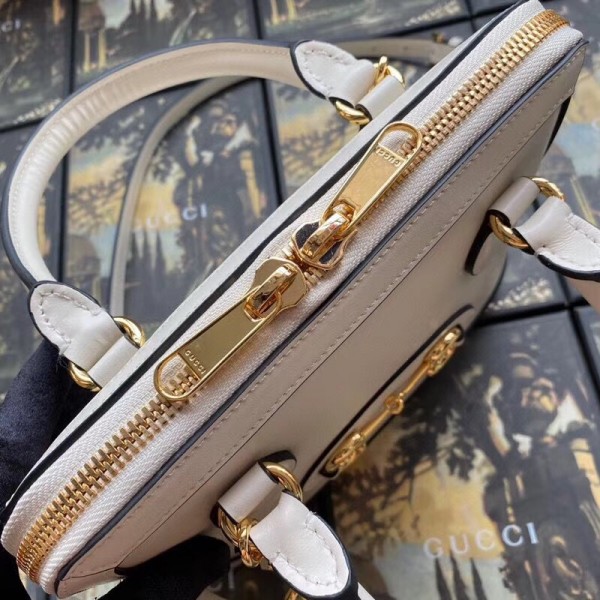 Gucci 1955 Horsebit Small Top Handle Bag In White Calfskin