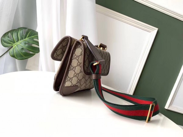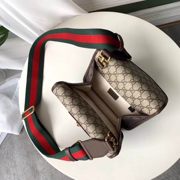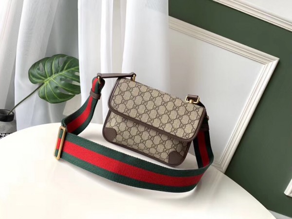First used in the 1970s, the GG logo was an evolution of the original Gucci rhombi design from the 1930s, and from then it’s been an established symbol of Gucci’s heritage. This small messenger bag combines the signature motif with the Web stripe—a timeless pairing that pays homage to Gucci’s roots.