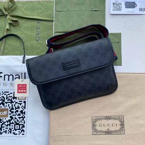 – Black/grey GG Supreme canvas, a material with low environmental impact, with black leather trim