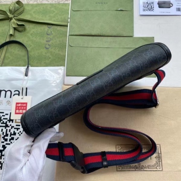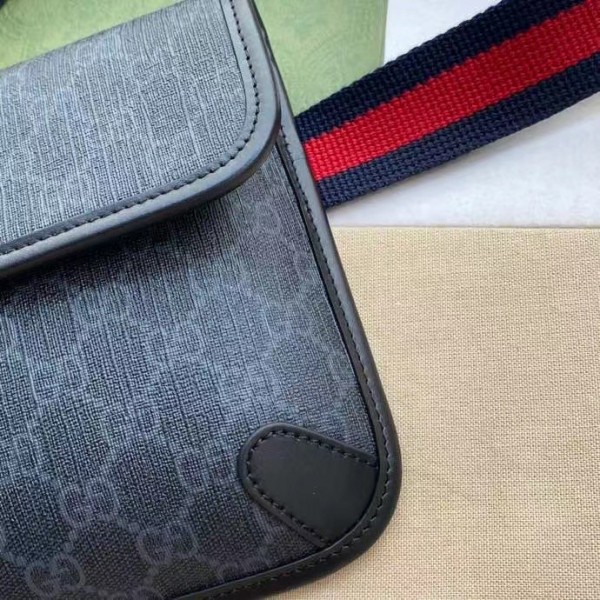 Presented in a black and grey combination, the GG motif takes on a contemporary look in a slim belt bag. The design is further enriched with an adjustable nylon strap featuring the Web in blue and red.