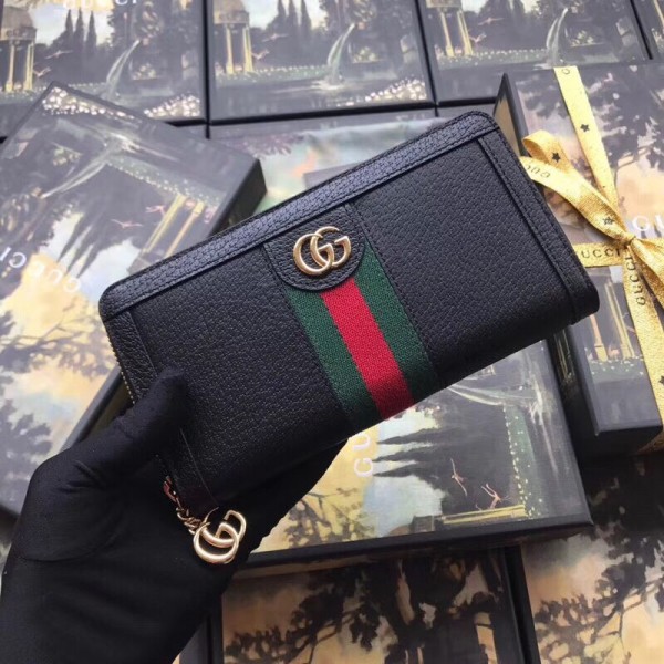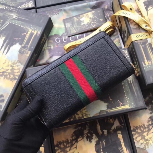 The Ophidia universe combines retro inspired details with emblematic House codes, referenced atop this wallet by the pairing of the classic green and red House Web with the Double G—an archival detail from the ’70s. Crafted from textured leather, this accessory is completed by a zip around closure.