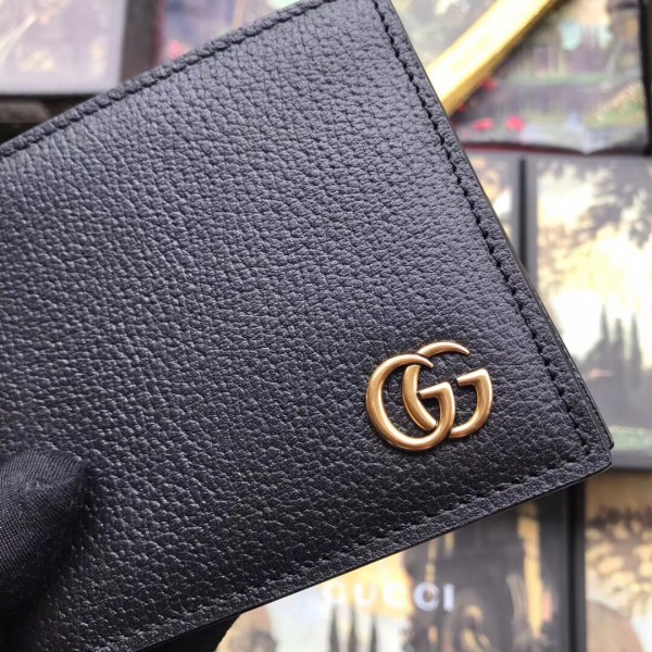 A bi-fold wallet, distinguished by our signature Double G hardware. Made in calfskin leather heat-stamped to achieve a boar effect, giving it a textured appearance.