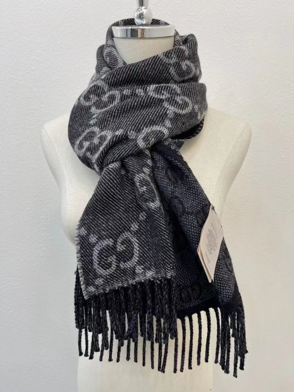 The front and back GG pattern in reverse colors adds a playful note to this soft jacquard wool scarf. The monogram motif dates back to the 1970s, recalling the initials of the founder Guccio Gucci. Here it is presented in a contrasting shade of grey, while black tassels complete the style.