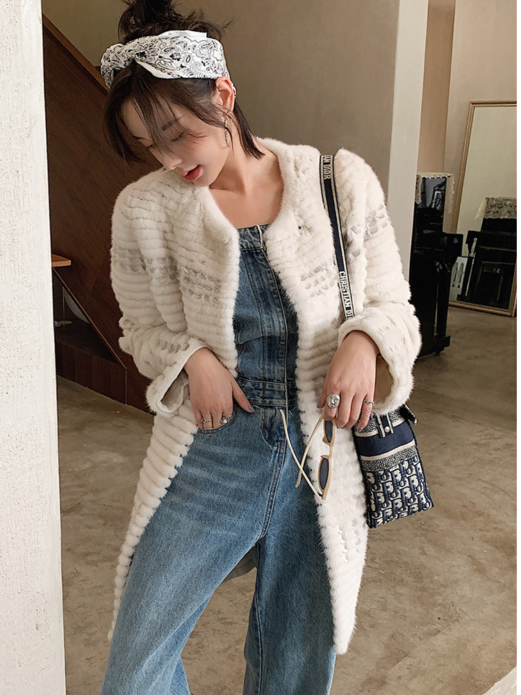 HDHOHR High Knitted Mink Fur Coats Natural Mink Fur Jackets Sequin Decoration Winter Female Fur Parkers