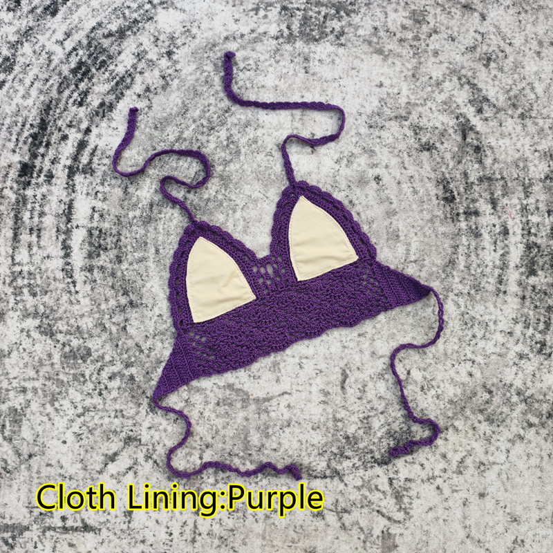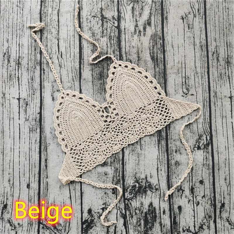 Handmade Crochet Lace Knit Bra Boho Beach Bikini Cami Tank Crop Top Halter