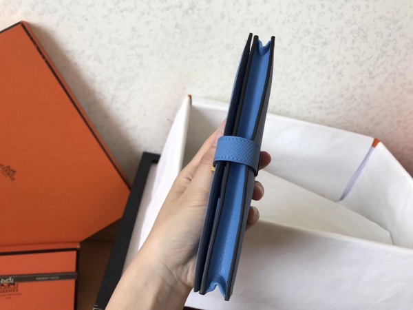 Hermes Blue Jean Epsom Bearn Gusset Wallet