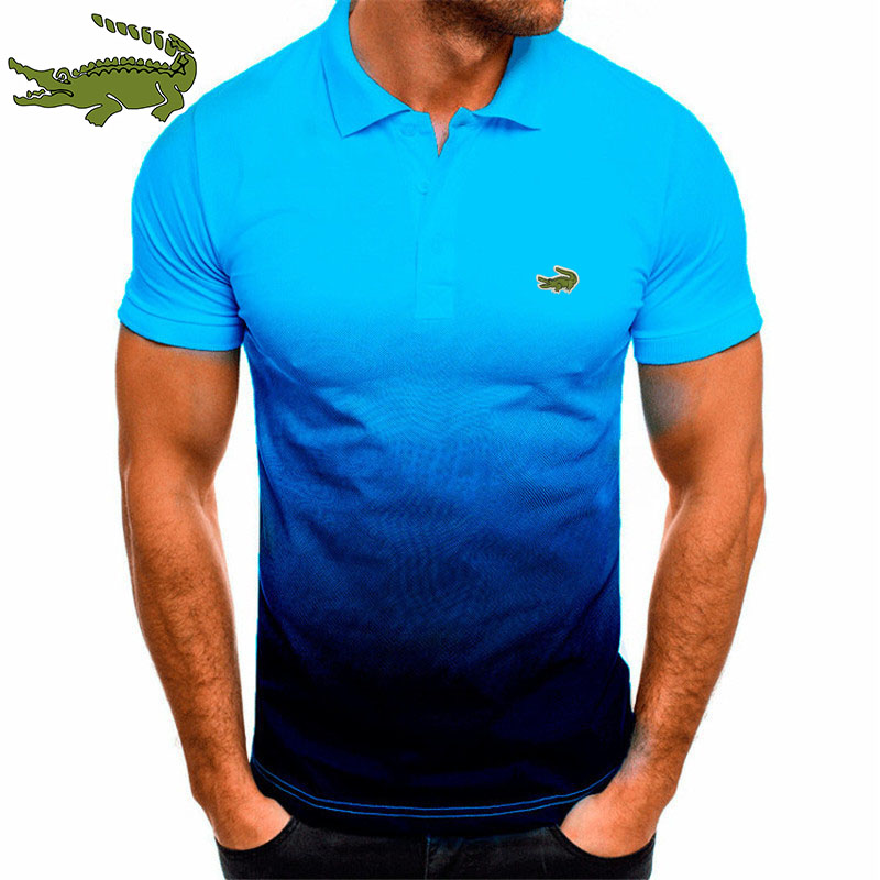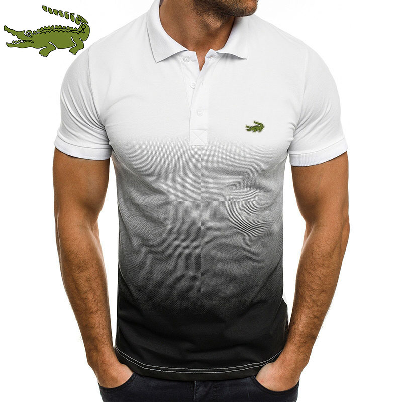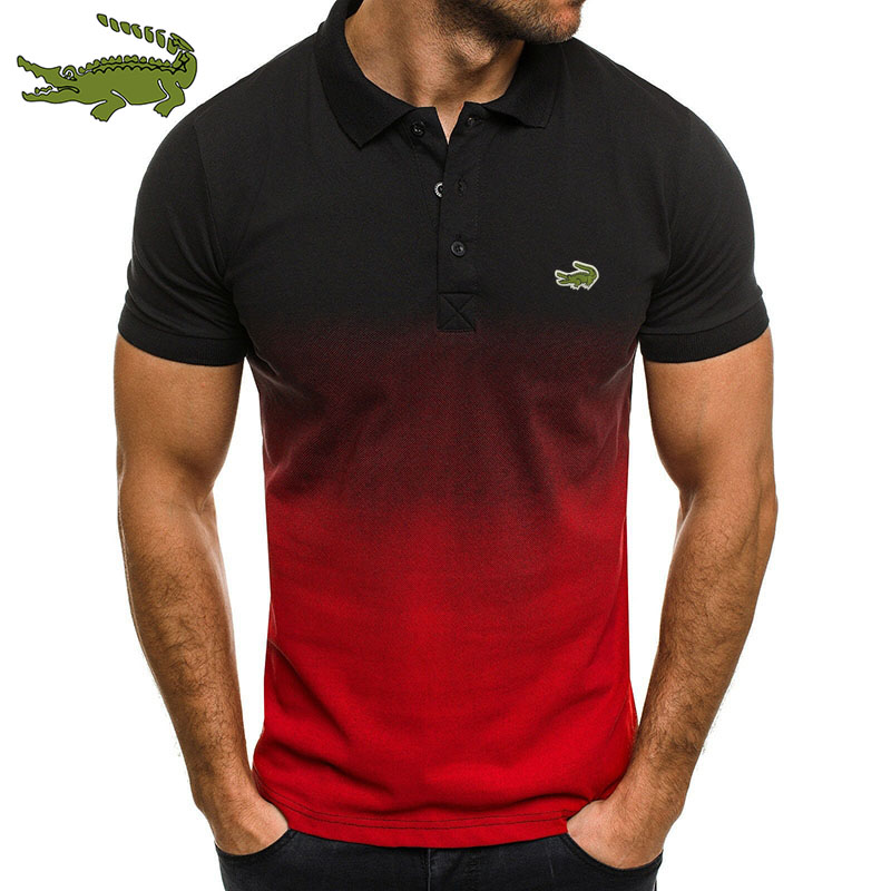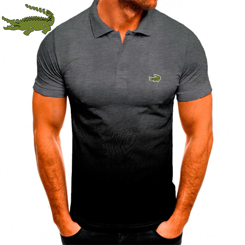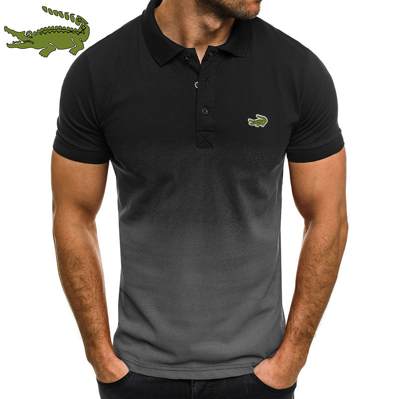 High Men's cotton printed polo shirt spring, summer and autumn business leisure high Lapel shirt