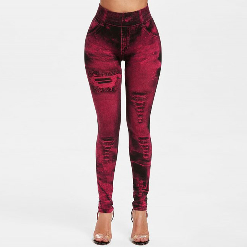 High Waist Faux Jean Leggings Slim Elastic Seamless Plus Size Skinny Pencil Pants Female Pocket Workout Running Leggings .
