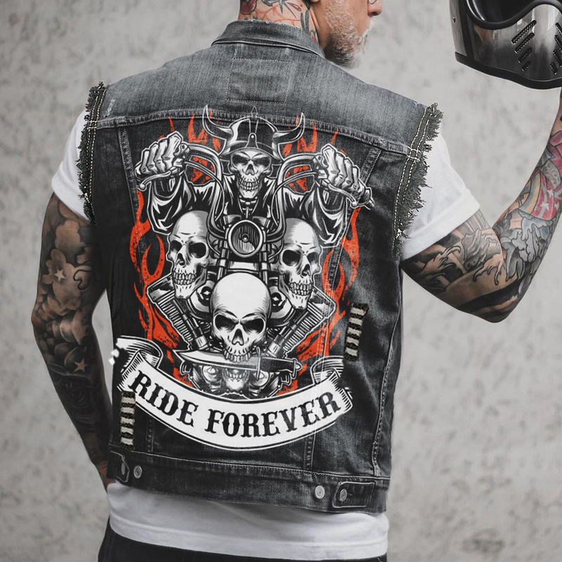 Hip Hop Punk Top Waistcoat Hole Ripped Cotton Men Denim Vests Mens Vest locomotive Sleevless Jean Jacket Skull Motorcycle Biker