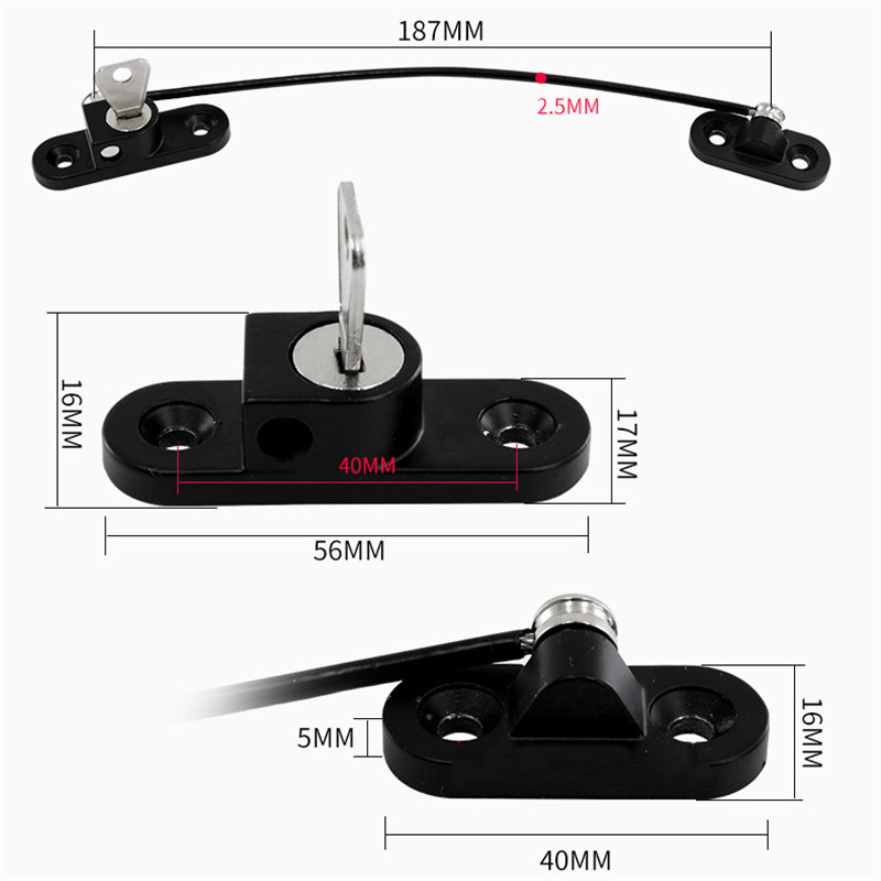 Window lock:Use four screws to fix (we will give away screws). More solid. Suitable for most windows. The size of the opening can be adjusted.