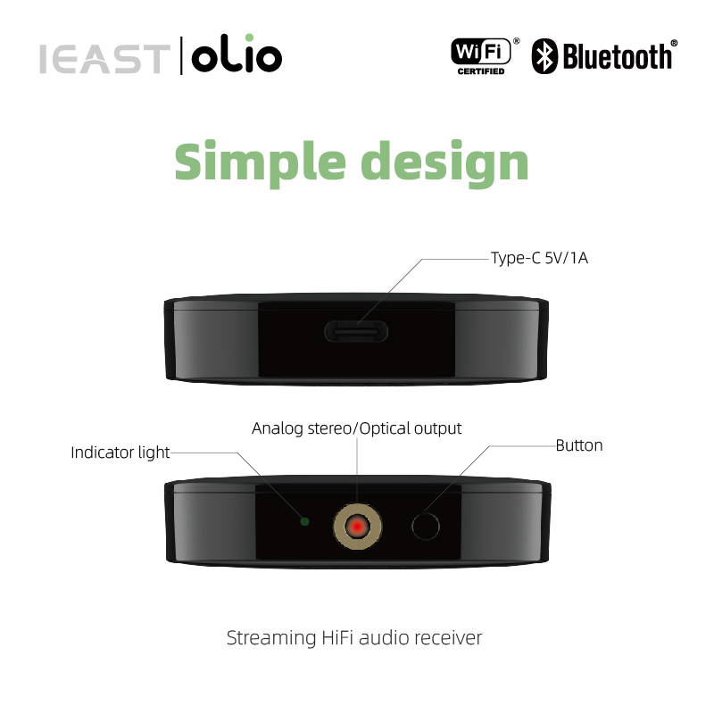IEAST olio Wireless WiFi 2 4G / 5G & Bluetooth 5.0 audio receiver music player multi room push system supports airplay2, DLNA……