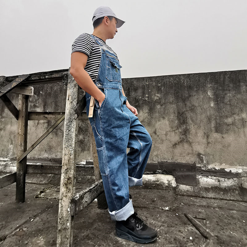 Jeans Men Men's Denim Overalls Men's Overalls Jumpsuit Large size strap Straight pants Blue jeans More sizes 30-44 46