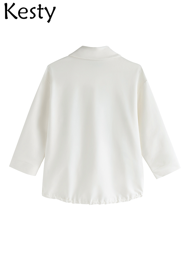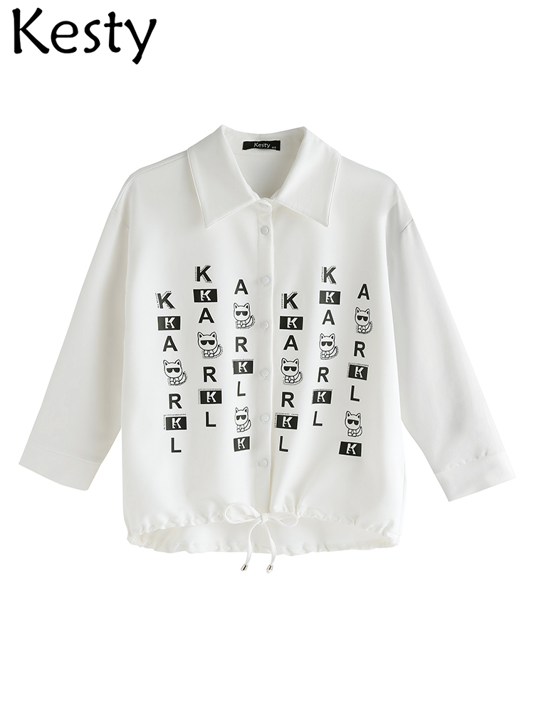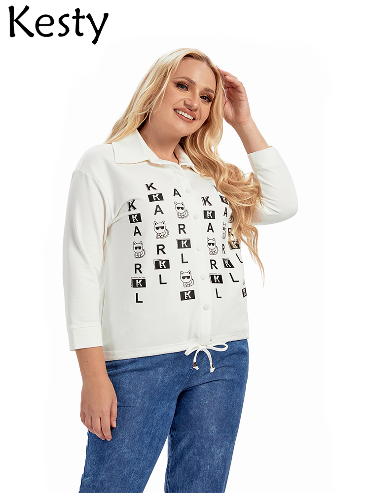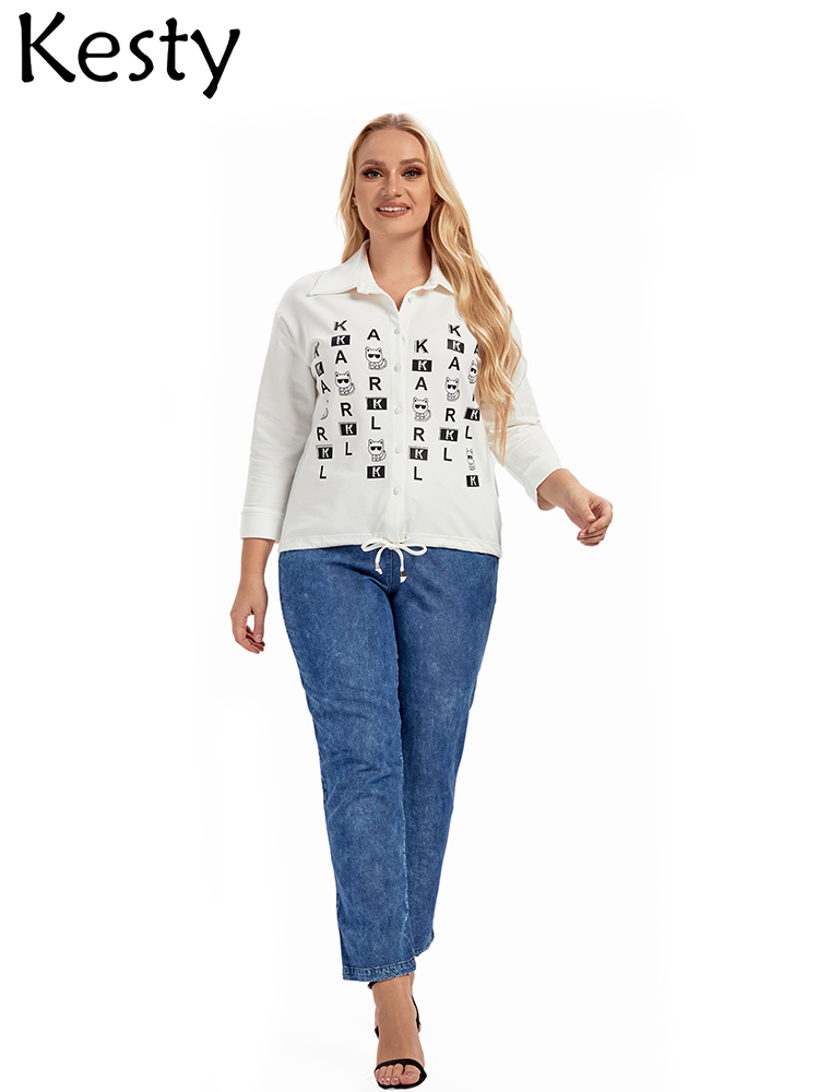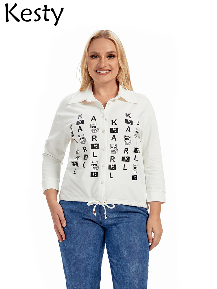 KESTY Women's Plus Size Shirt Spring Cotton Button 3/4 Sleeves Lapel Casual Loose Top