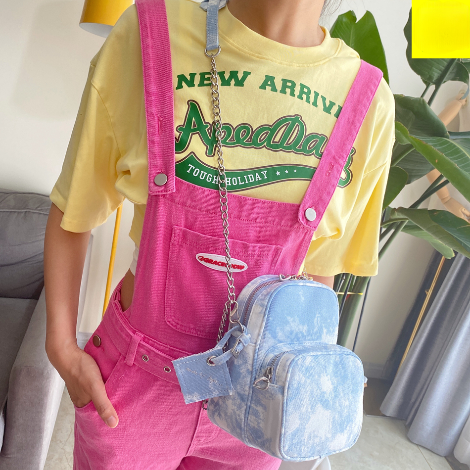 The bag material is denim, tie-dyed by hand, and the color of each bag will show different effects. The overall color trend is blue, and the quality is very good. The specification is about 22*18cm. It is thick and durable. Double layer practical design.