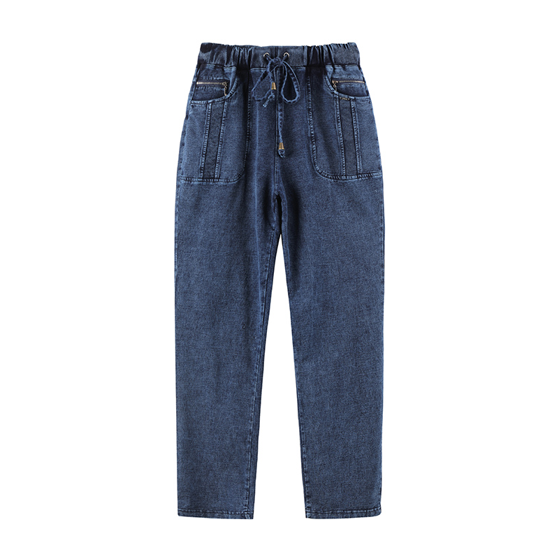 LIH HUA Women's Plus Size Jeans Autumn High Stretch Cotton Knitted Denim Trousers Casual Soft Jeans