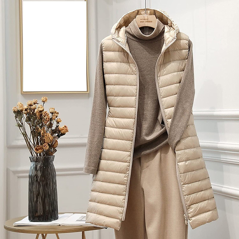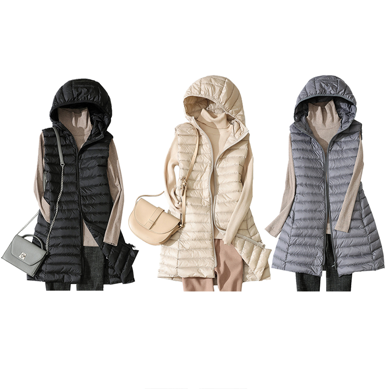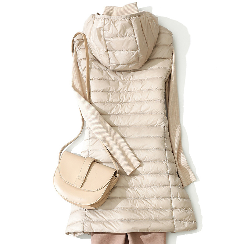 Ladies Sleevless Warm Hooded Down Vest Jacket with Pockets Women Winter Casual Mid Long Waistcoat Down Cotton Padded Female Vest